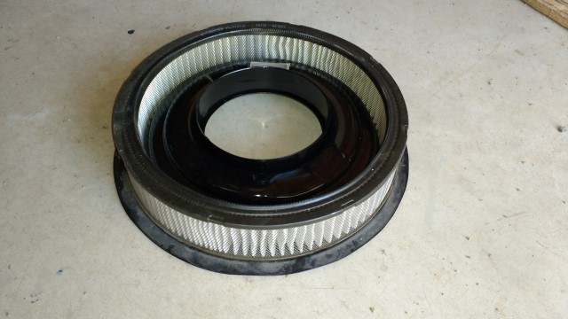 With pan painted black, it's hard to see the collar but, after comparing 2004 1/8 mile times at Lancaster, running with the unmodified air cleaner was definitely slower than with no air cleaner.