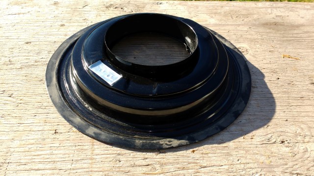 With the good weather persisting into fall of 2016, I decided that November 13 was going to be the day I reinstalled my Quadrajet. The first thing to tackle was deleting the 1-7/16" high collar spot-welded to the air cleaner's pan.